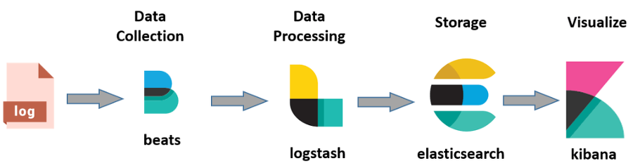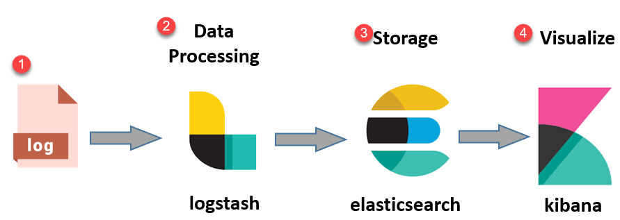 로그 식별 → 로그 or 이벤트 데이터 수집 → 로그 or 이벤트 데이터 분석 및 변환 → 변환된 로그 및 데이터 저장 → 시각화
